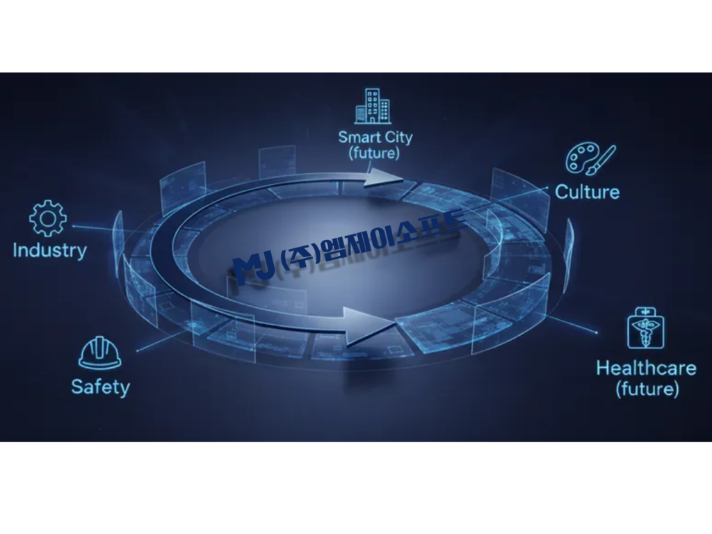 우리는 logX의 성공적인 경험과 현장에서 얻은 깊은 통찰력을 바탕으로, 우리 기술 혁신이 결코 한 분야에만 머무르지 않을 것임을 확신합니다.엠제이소프트는 문화, 안전, 산업 등 우리 삶의 다채로운 영역에서 디지털 기술이 가져올혁신적인 변화를 이끌어갈 것입니다.